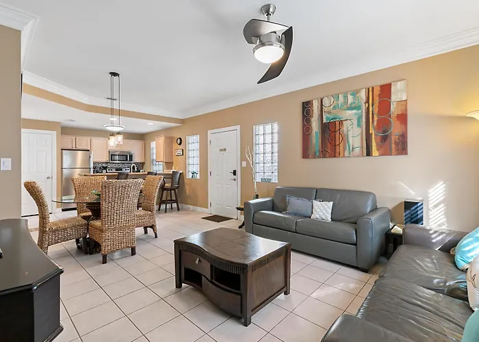 The cozy accommodations at the Ground Floor Condo W Pool provide a welcoming atmosphere, featuring spacious living areas that blend comfort and convenience. Each room is thoughtfully decorated, boasting modern amenities alongside tasteful furnishings, creating a home-like ambiance. Guests may enjoy refreshing dips in the inviting pool, complemented by the soothing sound of ocean waves in the background.